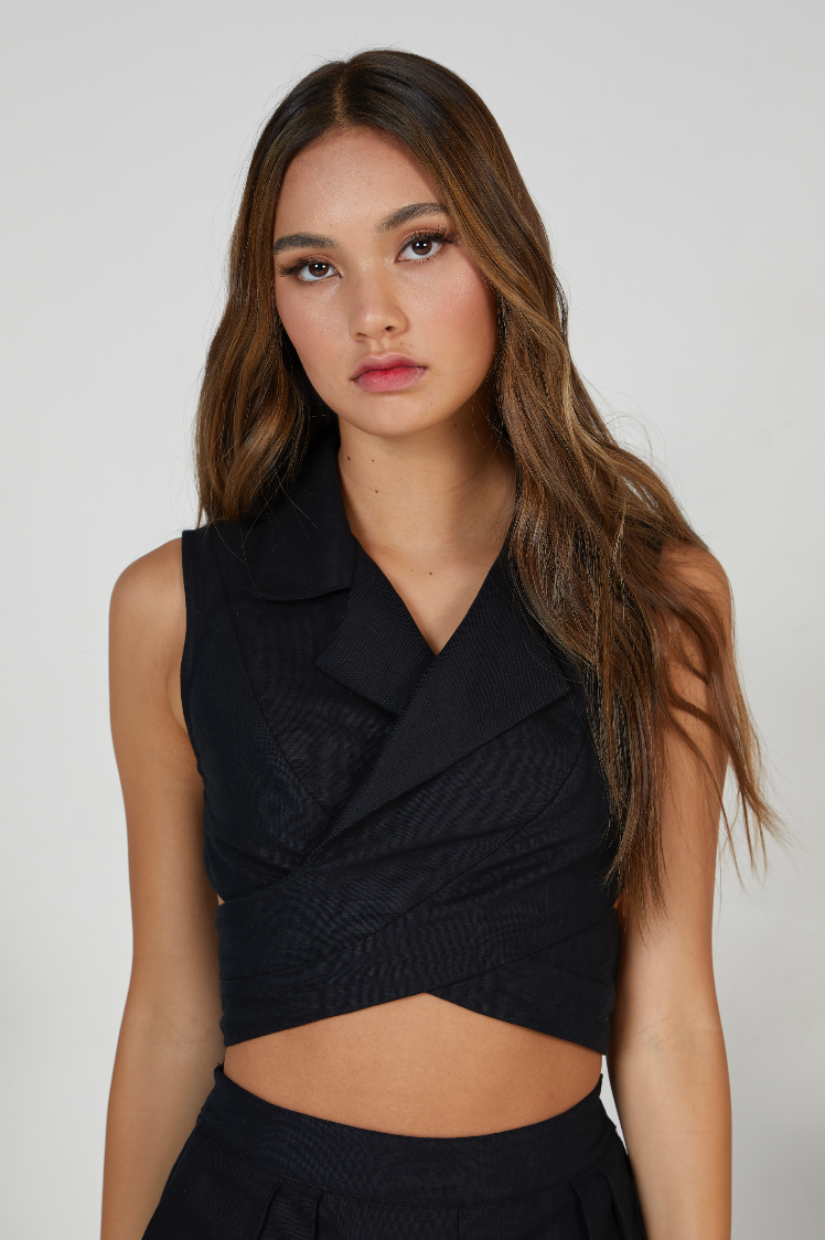 our classic akon wrap top is a wardrobe staple and is made out 100% deadstock italian linen
